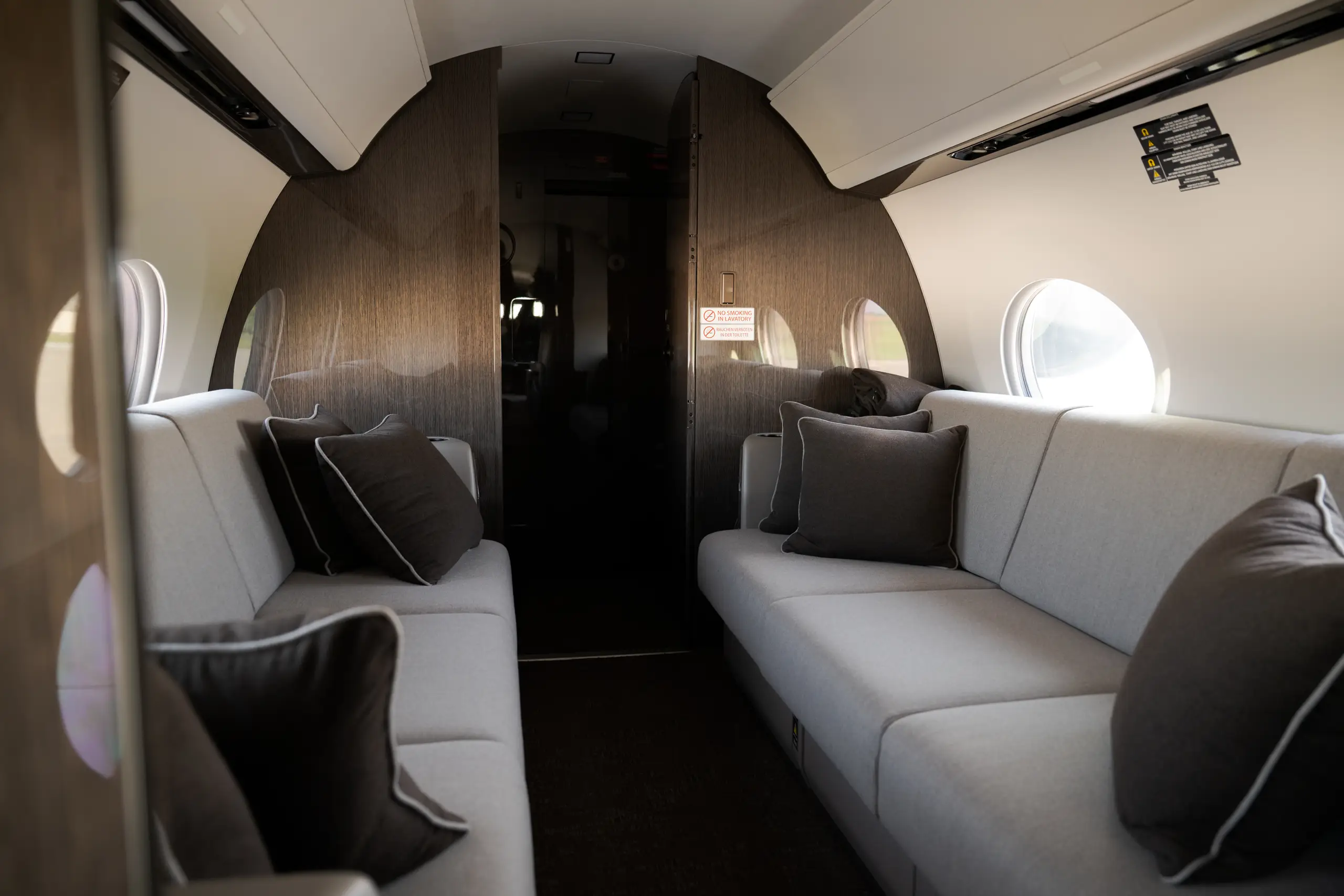 This aircraft has all the amenitites to offer - stand-up cabin, lavatory, hot meals prepared by a flight attendant, entertainment system as well as fully reclining seats.